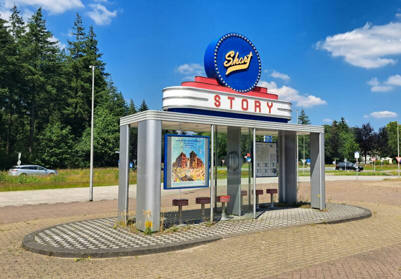 Zandsculpturen Garderen, busstation Short Story Wittenberg en de klimaatroman Een stad van woorden hebben iets met elkaar te maken. Ze delen met elkaar de mooiste plek van de Noord-Veluwe tussen Garderen en Stroe.